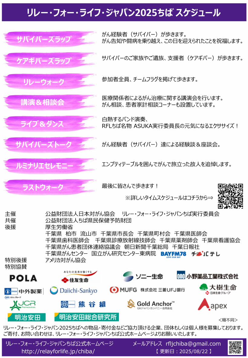 千葉県では柏市で「リレー・フォー・ライフ・ジャパン2025ちば」が開催されます。