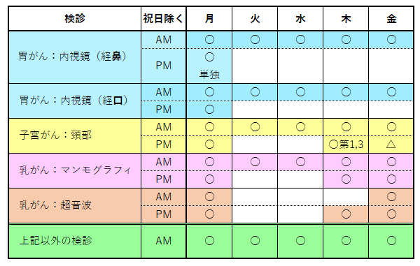 ▸健康診断・がん検診は、保険診療(保険証を使用した外来)と同日に実施ができません。別日となります。